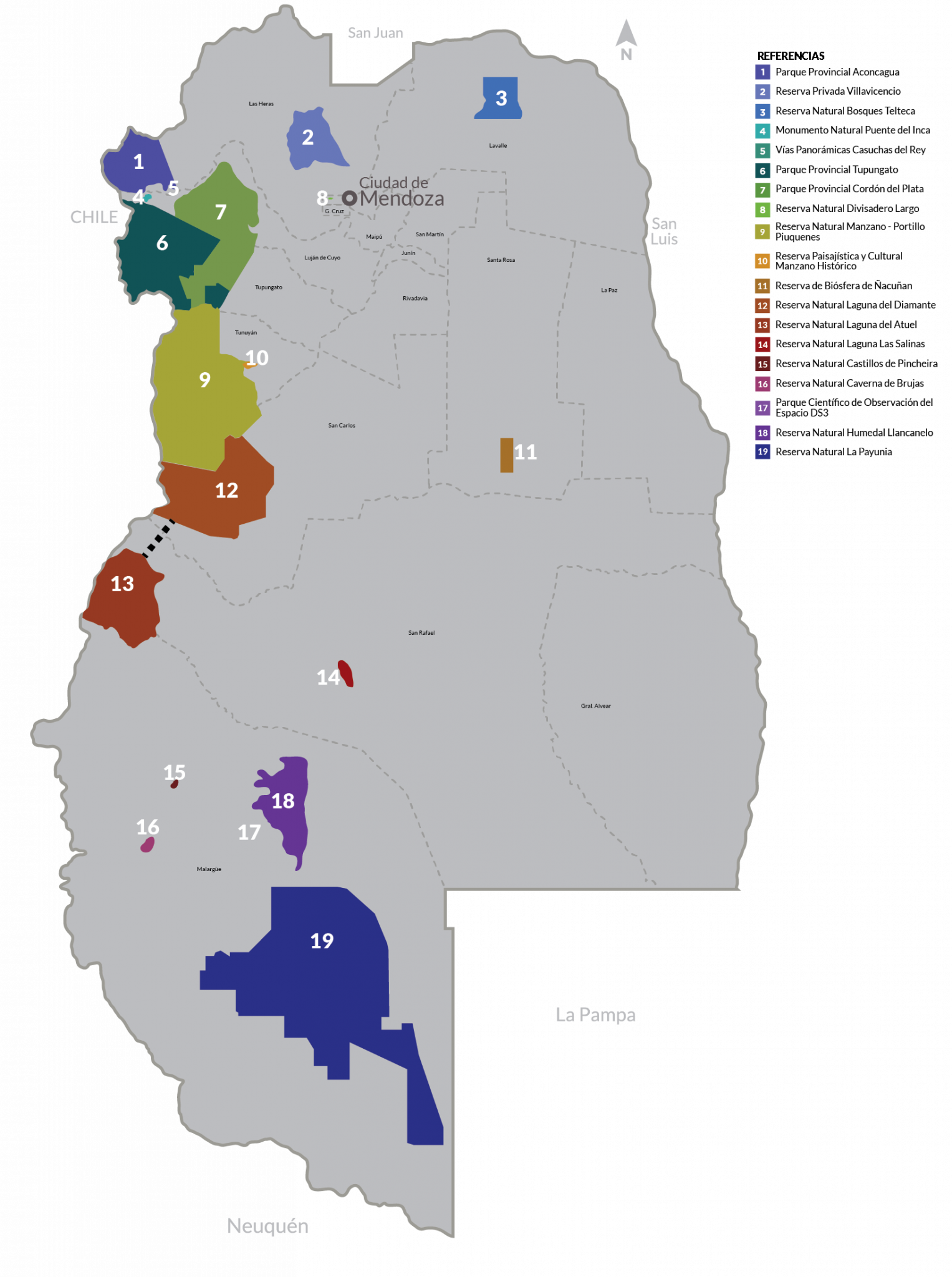 La Red de Áreas Naturales Protegidas de Mendoza está integrada por 19 reservas gestionadas por la provincia.