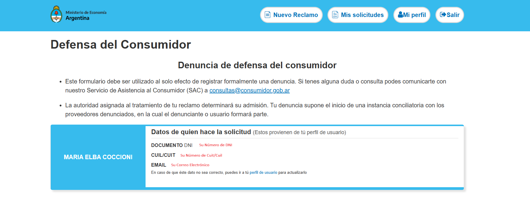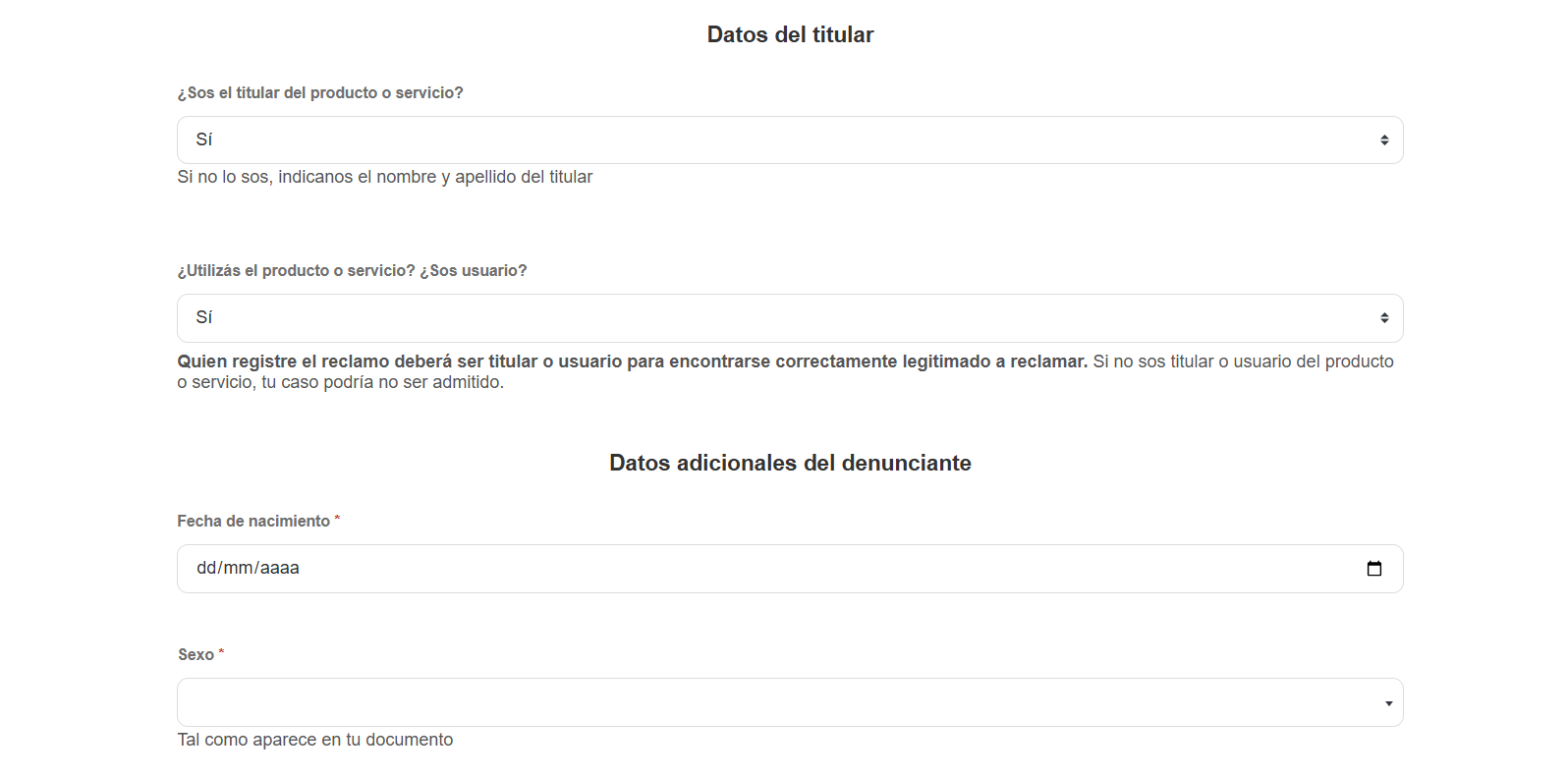 Complete todos los datos del denunciante.