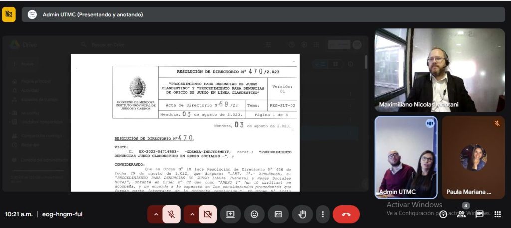 A lo largo de ambas jornadas, y de manera virtual, fueron auditados los procesos alcanzados por esta normativa. El equipo auditor estuvo conformado por los representantes de ALEA Maximiliano Montani, Ayelén Castells y Leopoldo Luján, quienes evaluaron el cumplimiento de los distintos requisitos establecidos en la normativa específica para Juegos de Azar en Argentina.