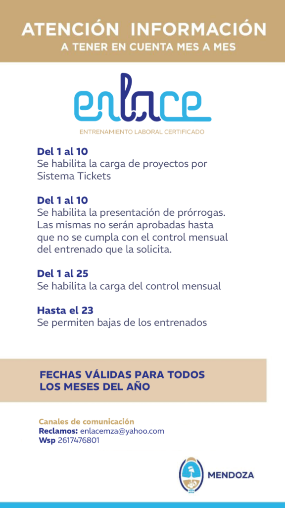 – Límite para presentación de prórrogas con inicio el mes siguiente: del 1 al 12 ENERO (Enlace Joven SIN prórroga)